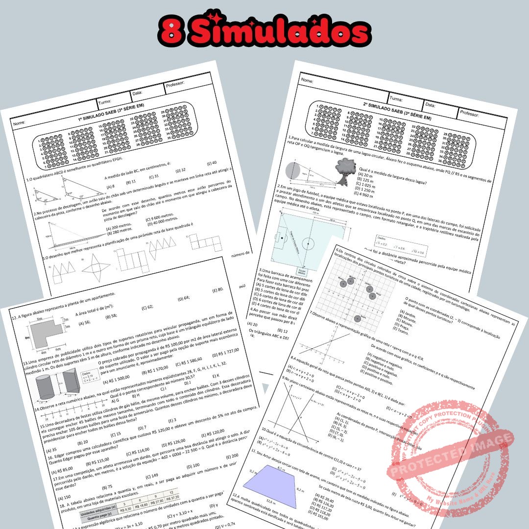 📊 8 simulados com uma questão para cada descritor de Matemática da 3ª série do Ensino Médio